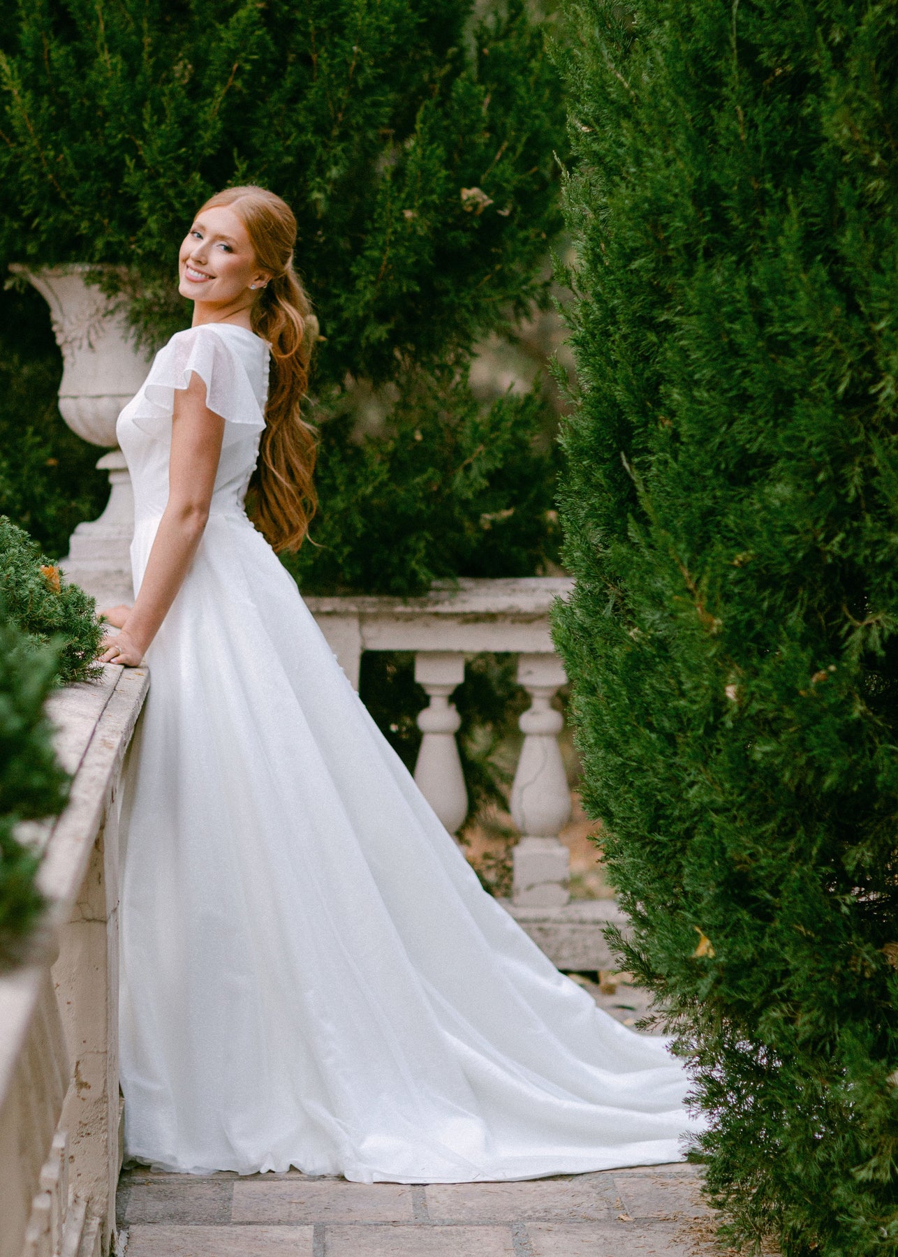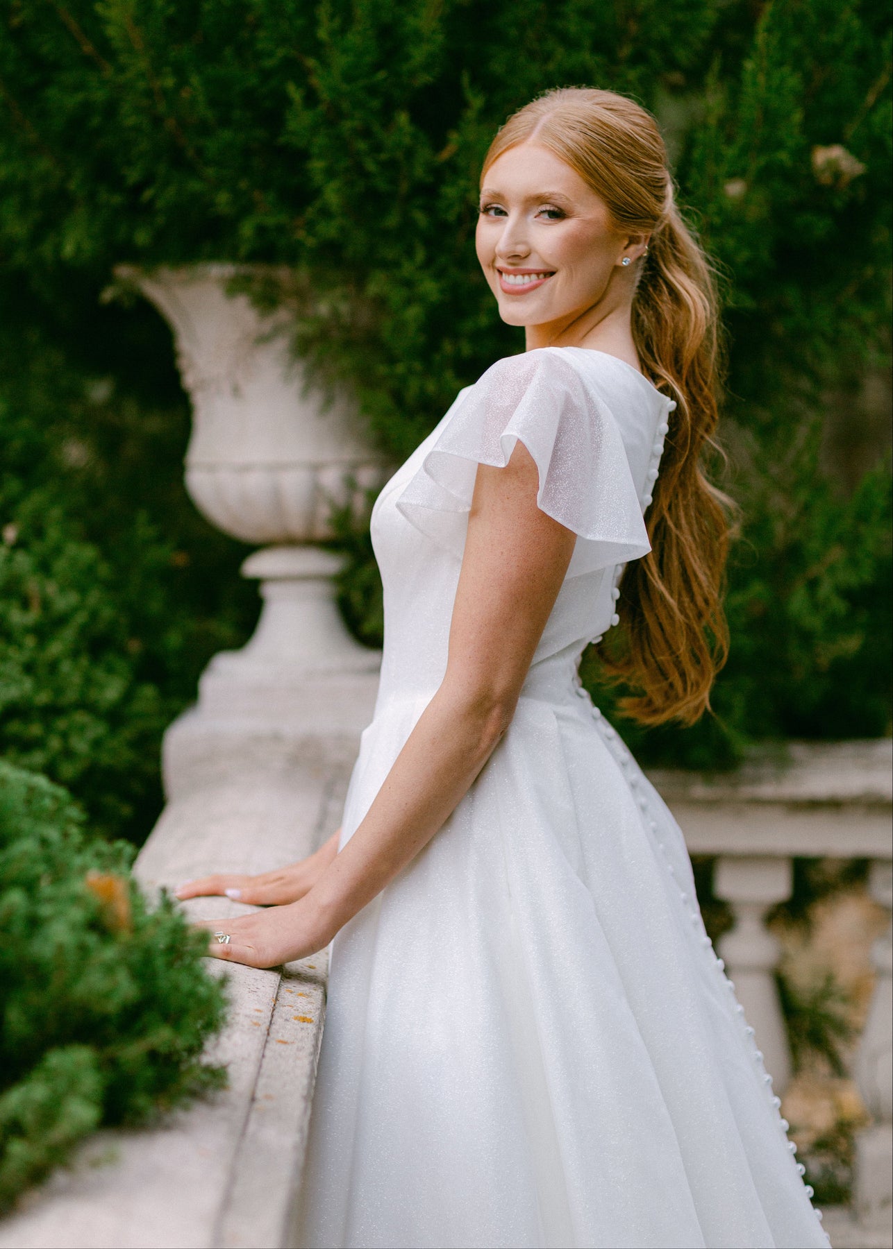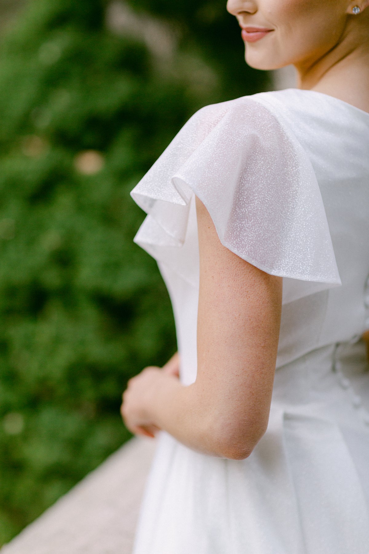 Flutter sleeve 6", 1 layer of sparkle, 1 layer of tulle